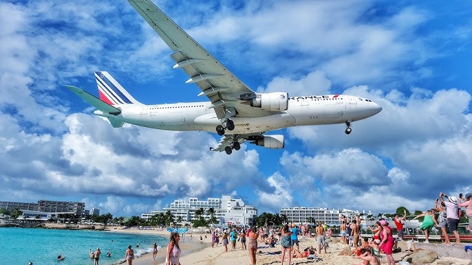Above is the shot from Sint Maarten looking across the border into French Saint Martin, with the island of Anguilla beyond. The white bridge in the distance leads you to the infamous airport, where people sit on the beach taking selfies of aeroplanes landing just above their heads, as shown below.