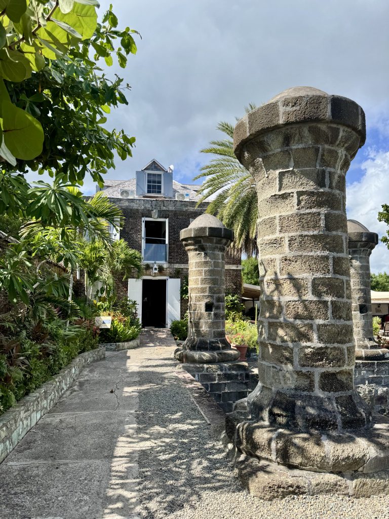 The restaurant was named after the pillars that were built in 1797 to support a boathouse and sail loft. This structure was used by the British navy to repair sails for its fleet, including Nelson’s 28-gun frigate Boreas. 72 masons built the large circular stone pillars in 15-months. A waterway between the pillars was used for hoisting sails from boats through a trap-door in the sail loft floor. After the building was destroyed by a hurricane in 1871 all that remain are the stone pillars, which have been capped with concrete to guard against erosion.