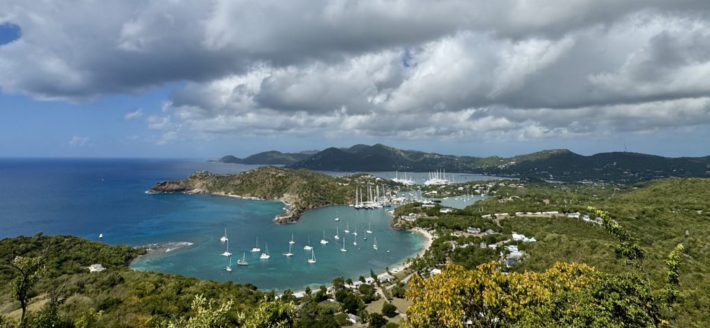 The view westward to Nelson’s Dockyard and English harbour (below) wasn’t bad either. This is probably our favourite view from our travels so far.