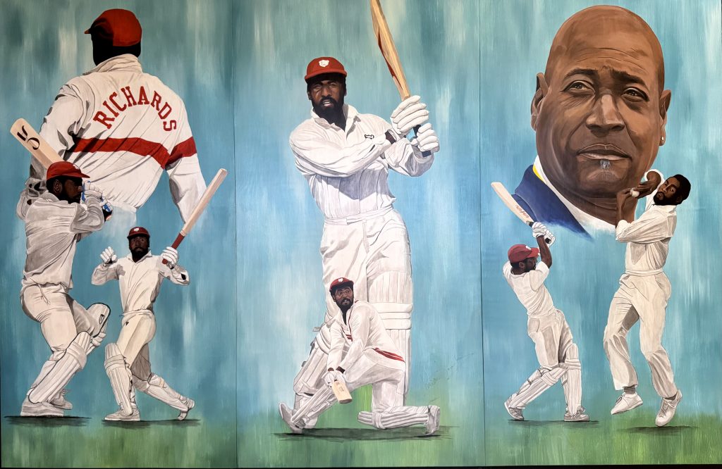 We paid the princely sum of $2 each for stadium entry and took a couple of quick snaps of the Maestro. One outside the entrance with his statue and one inside the front entrance, of a local artist’s depiction of Viv’s emphatic, stylish approach to the game.