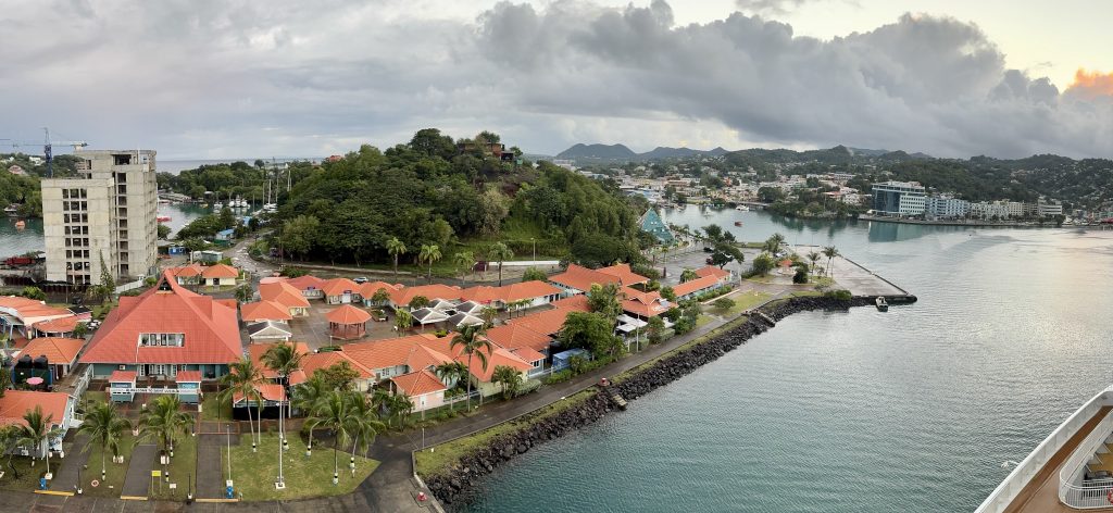 By mid-morning, it looked a little brighter, so we ventured out for a swift walk around the port of Castries. It was not to be, because ten minutes in, we were drenched and so retreated back to the Retreat!
