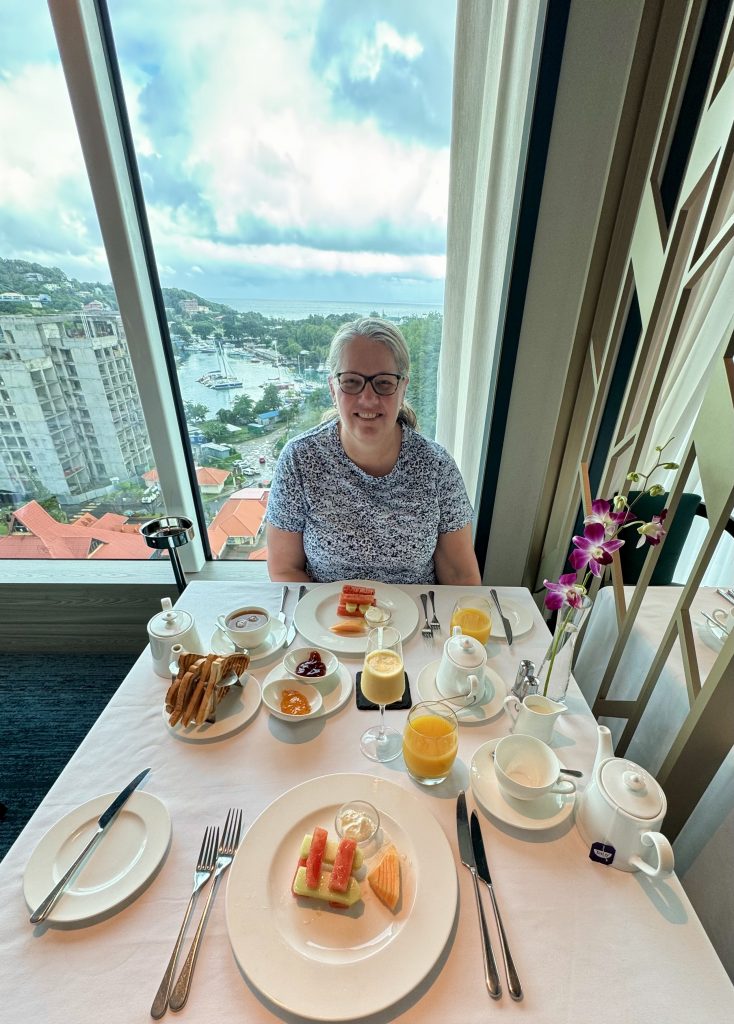 Our Captain came over the tannoy to warn us of thunderstorms across the island today. With that in mind, we sat and had a lovely leisurely breakfast in Epicurean, starting with melon and Greek yoghurt, followed by omelettes and toast, freshly squeezed orange juice, mango smoothie and English tea.